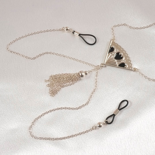 Sotto la camicia…si nasconde un gioiello divino, quasi ipnotico!!!! All’altezza del cuore un meraviglioso ventaglio e da questo partono delle fini catenelle che intrappolano i tuoi capezzoli.