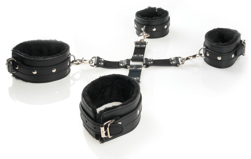 Le manette e le cavigliere sono imbottite e possono essere regolate con le chiusure con fibbia . Ottima e perfetta per i giochi di bondage.