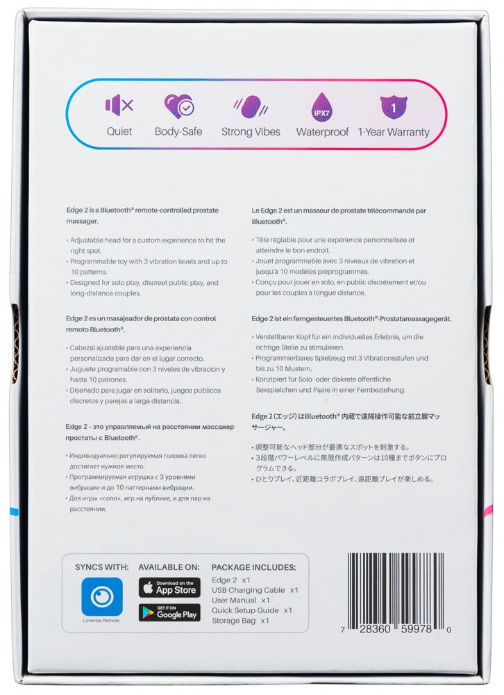 Edge 2 è il massaggiatore prostatico intelligente firmato Lovense, progettato per regalarti un piacere profondo e controllato in ogni dettaglio. Con 2 motori potenti, coccola contemporaneamente il punto P e il perineo, per un’esperienza intensa e personalizzabile.